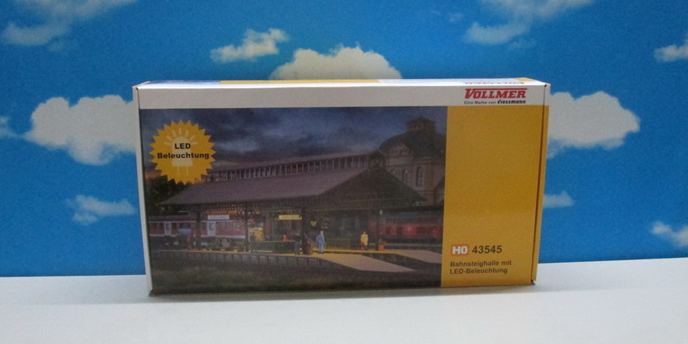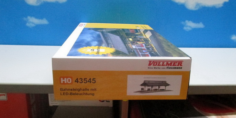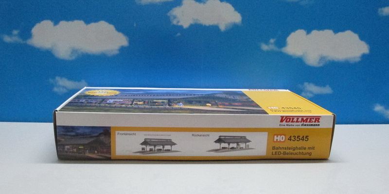 Functional kit. 6 warm-white LEDs under the roof uniformly illuminate the waiting area. With a second kit the hall can be extended. Suitable for all common track systems. Dimensions: L 37,2 x W 14 x H 10,5 cm, Platform height 1.2 cm / Passage height 8 cm, Passage width 4.5 cm.