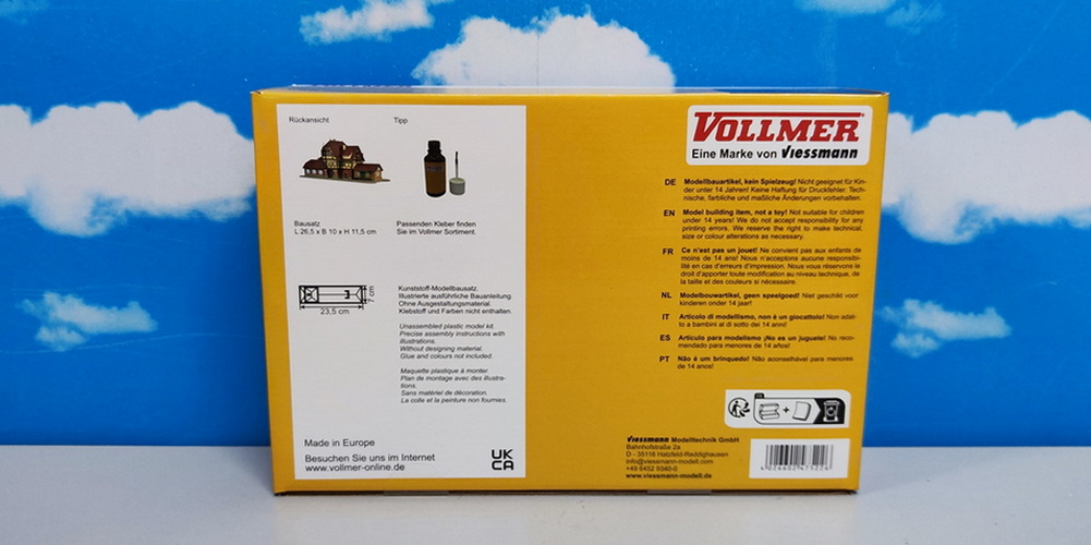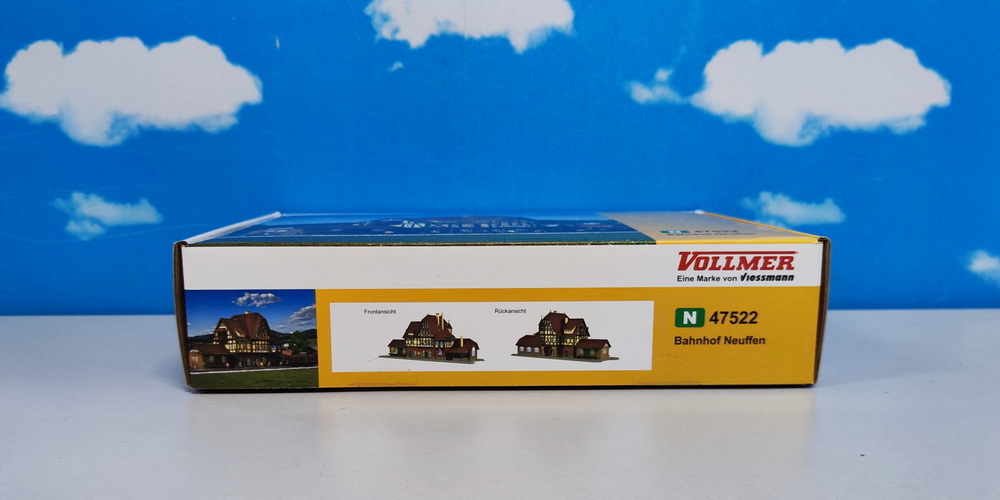 A typical country station. End of the line Nurtingen-Neuffen, near the castle ruin Neuffen. The original was built end of 20th century and the Vollmer model shows all these details. Dimensions: L 26,5 x W 10 x H 11,5 cm.